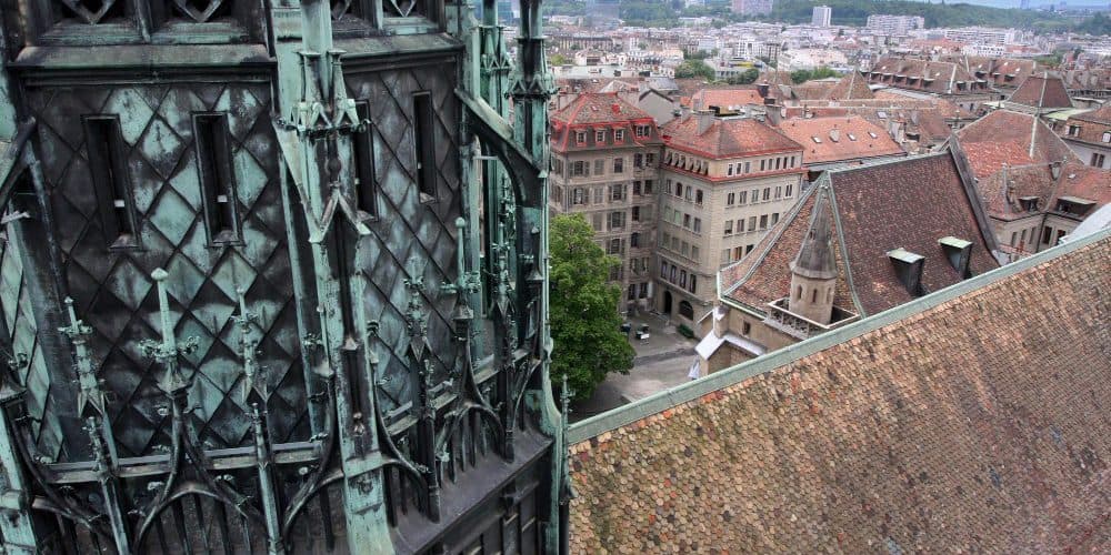 - קתדרלת סנט פייר, פלאס סנט פייר (הנקודה הגבוהה ביותר בעיר העתיקה). מעבר סנט פייר החדש כולל כניסה לכל שלושת האתרים של חצר סנט פייר, אזור בעל חשיבות רוחנית ותרבותית ייחודית. הקתדרלה והמגדלים שלה, במקור קתוליים, מגלמים את נקודת השיא של המסורת הרפורמית ומציגים את מקורות הנצרות באתר הארכיאולוגי הגדול. כעת משלימים אותם המוזיאון הבינלאומי לרפורמציה בקומת הקרקע של המוזאון. מעבר תת-קרקעי, שנפתח מחדש עם הקמת המוזיאון, מחבר בין שני המבנים. הסיור הארכיאולוגי מתחת לקתדרלה מצוין למי שמתעניין בתחום והוא מסביר את מקורותיה של הקתדרלה ואת הסיבה למיקומה בז’נבה עוד בתקופה הפרה-רומית. אלה שמוכנים לטפס במדרגות של מגדלי הקתדרלה יוכלו להנות מהנופים המרהיבים של ז’נבה ושל האגם. בסמוך, האודיטוריום, שבו לימד קלווין, משלים את המתחם שגם מייצג את העבר וגם פתוח לתהיות מודרניות.